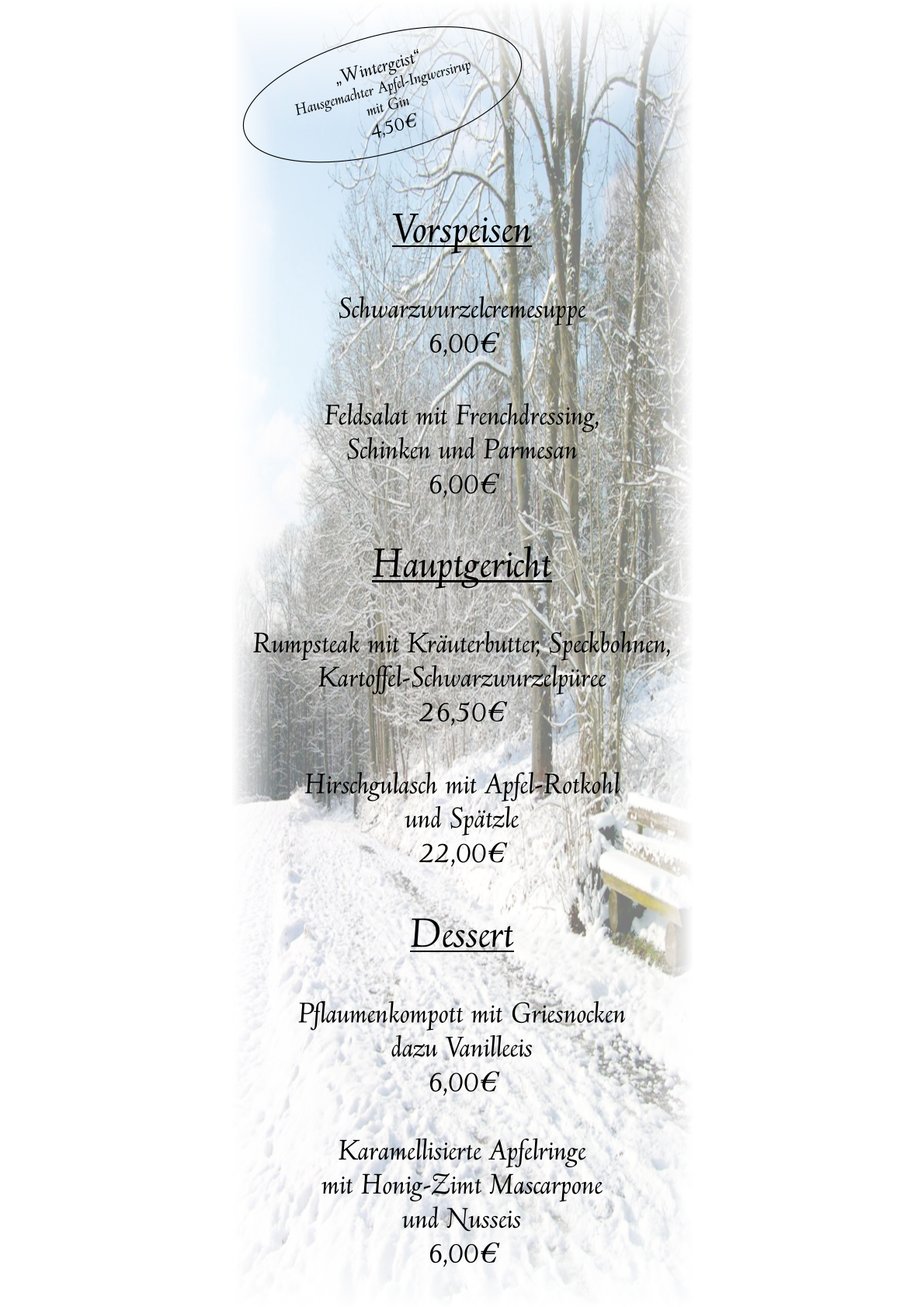 Unsere Küche ist durchgehend geöffnet. Für den gemütlichen Kaffeenachmittag bieten wir Ihnen hausgemachten Kuchen und Eis-Spezialitäten. Alle Speisen sind auch als Senioren-Portionen erhältich. Zur Speise- und Getränkekarte